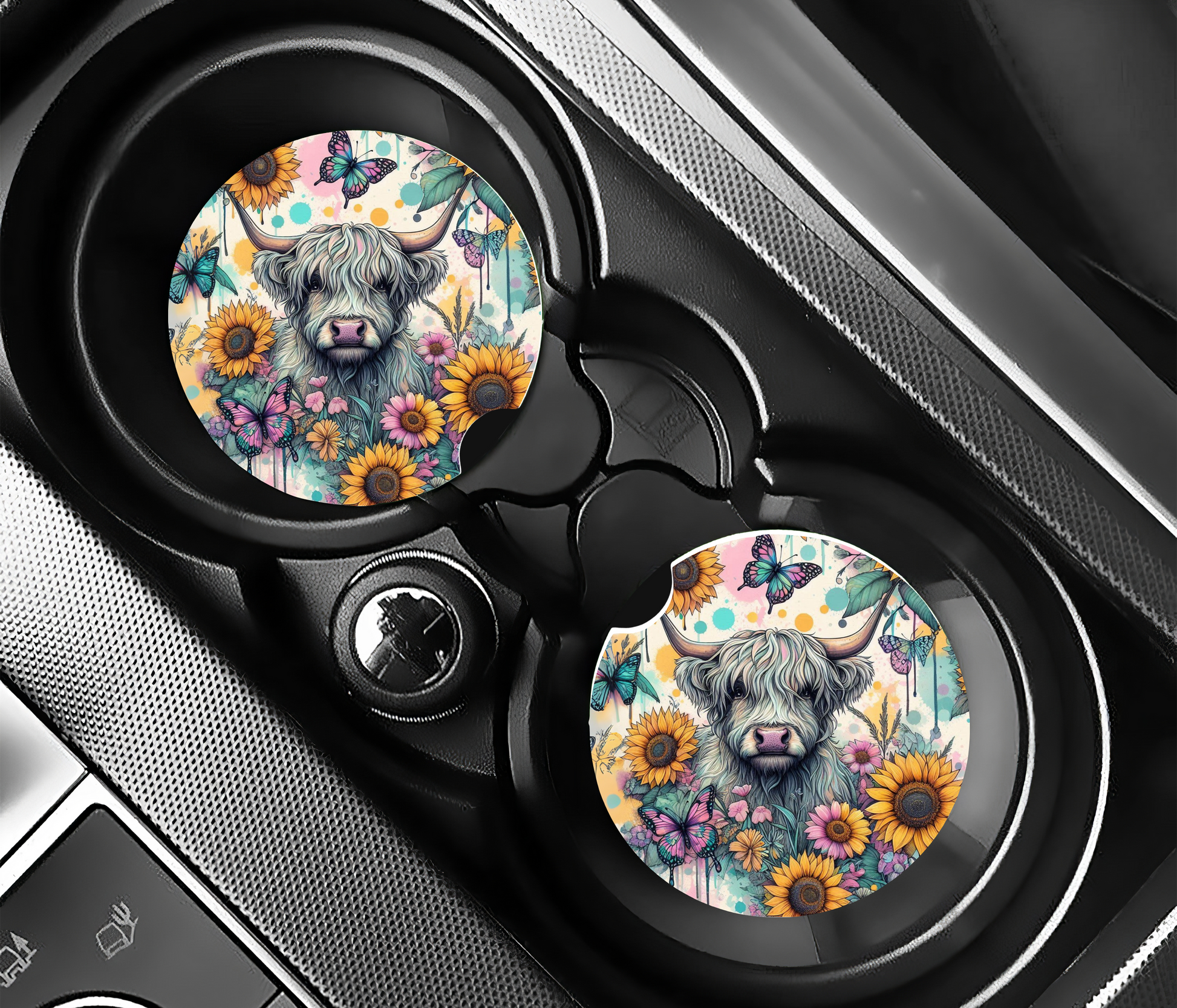 Pastel Highland Car Coasters